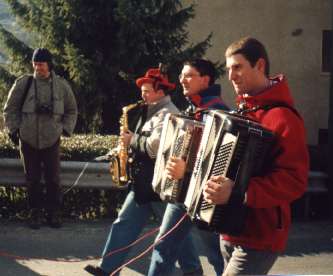 o tre musici che suonano la fisarmonica e/o il saxofono) segue la guida e