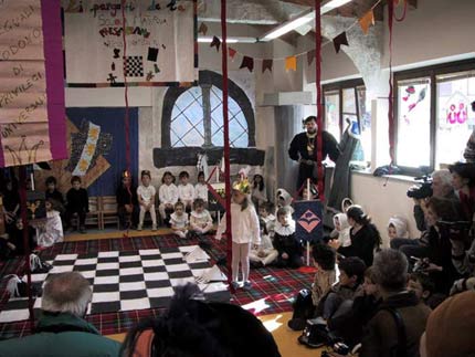 al castello, la sera, si svolge la rappresentazion teatrale di "Una partita